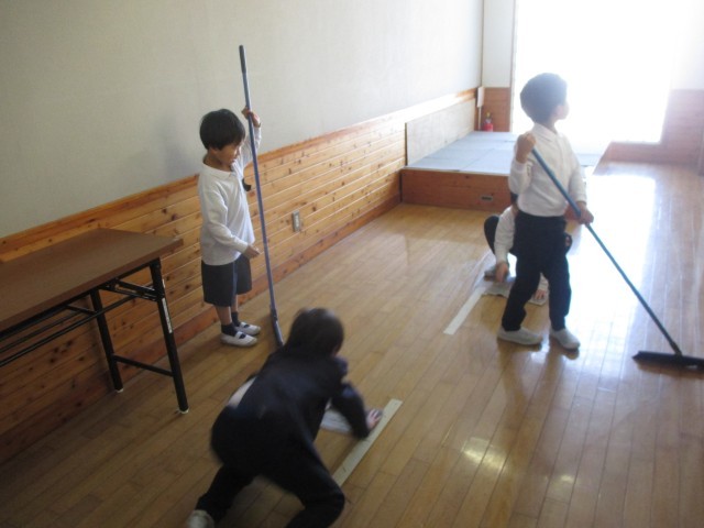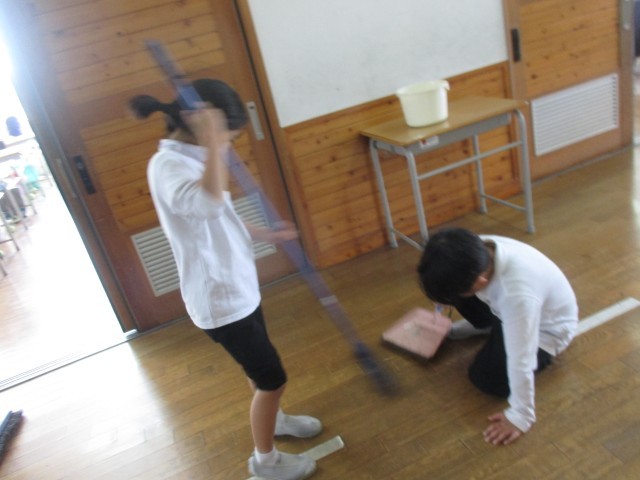 お掃除がんばる成名っ子