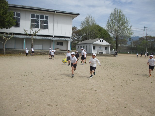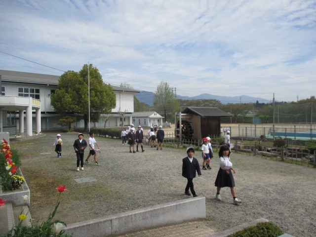 すっかり暖かくなって(動くと汗ばむくらいです)、外で気持ちよく遊べる日が増えてきました。今日はお天気が良かったので、業間休み(20分休み)には1年生から6年生までの多くの子どもたちがグラウンドや土の広場でお友だちと仲良く、サッカーをしたり鬼ごっこをしたり、遊具で遊んだりしていました。本校の素敵なところは、学年を越えて異学年同士で一緒に遊ぶことができるところ。下学年は上級生に負けじとボールに食らいつき、上学年は下級生に優しく接しているところが何とも言えないのです。また、遊びに出るときは喜び勇んでグラウンドまでの間、ついつい走ってしまう人がまだまだ多くいますが、予鈴がなって校舎に戻るときにはみんなちゃんと歩いて移動することが出来ていて、これも良き伝統として引き続き受け継いでいってほしいと思います。