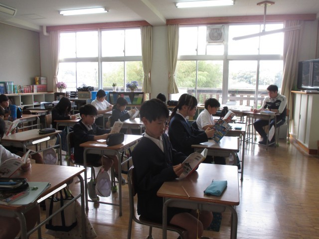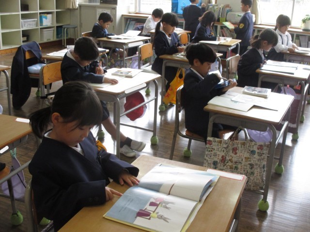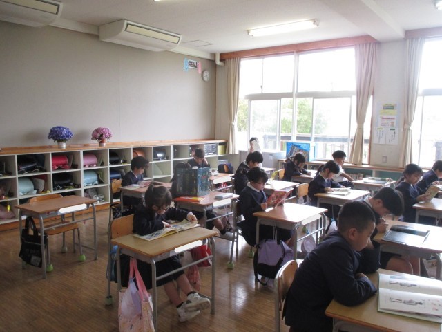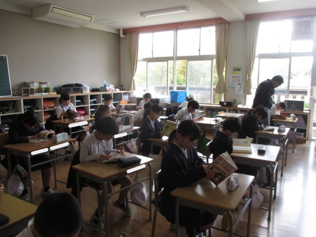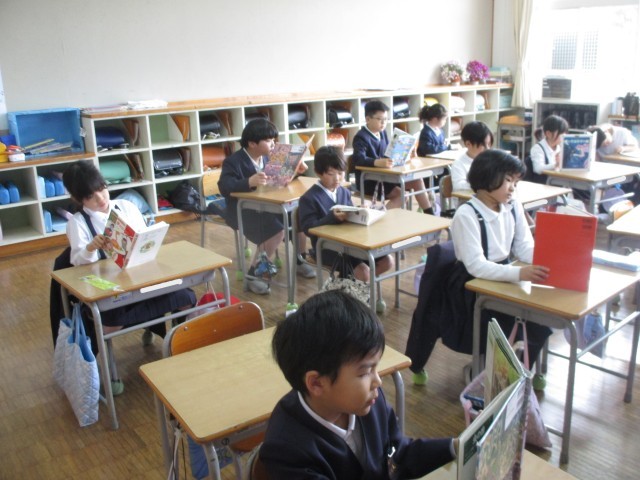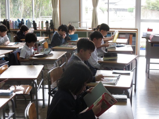 毎週金曜日の朝学習は、全校読書の時間です。教室をまわると、6年生から1年生まで静かに教室で、本と向き合い、それぞれのお話の世界に入り込んでいました。15分間のこの静かな時間から1日がスタートしますが、1週間の終わりの日が落ち着いた1日になるようにと取り組んでいます。これからもこの良い習慣が続くとともに、ご家庭でも親子やご家族で読書をする時間を設けてくだされば更にありがたいです。
