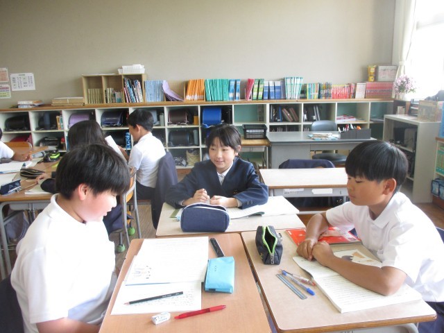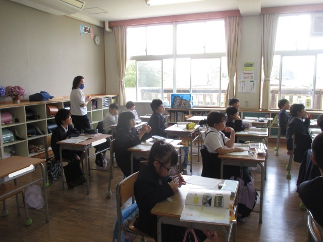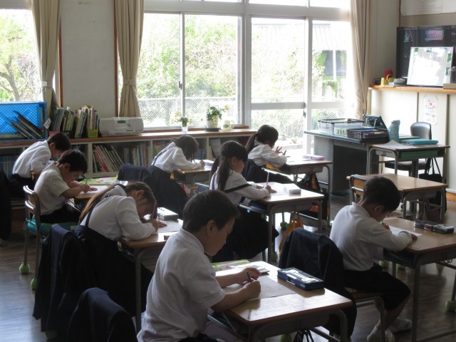 休み明けの学校ということでしたが、1時間目の教室をのぞくと、みんな本気で学習に向かっていました。1年生はかな文字の学習が始まっており、今日は「へ」の字について学んでいました。また、他学年でも音読をしたり、今年度から始まった社会科を学習していた3年生は方位(東西南北)について楽しく勉強していました。今日は、1・3・5年生の授業風景をお届けします。
