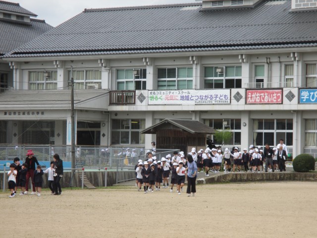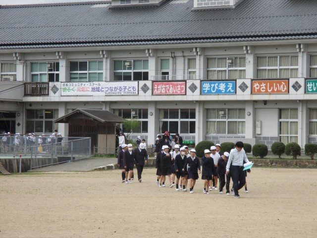 また、今日は10時過ぎより、今年度初めての避難訓練を行いました。先週お天気が悪くて実施出来ず、本日に延期になりました。理科室から出火したという想定で行いましたが、各クラスで学習した正しい避難の仕方のお約束をしっかり守ることができ、全校児童、そして全職員がグラウンドに3分21秒で避難することができました。今後も地震や不審者対応等の避難訓練があります。真剣に訓練することで万が一のときに落ち着いて避難することができるようにします。