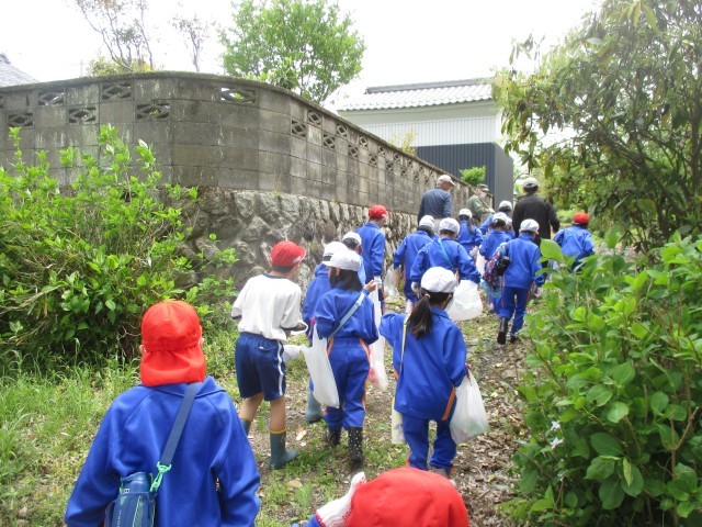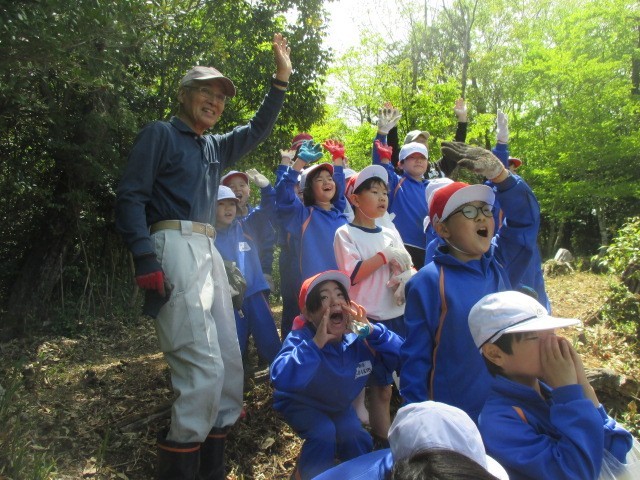 今日の日を楽しみに待っていた2年生。楢地区の3名のボランティアの皆さんといっしょにいざ鷹山へ。今年は表年ということで、山道の両脇にはにょきにょきとたけのこが顔を出し、2年生の子どもたちのわくわくも止まりません。