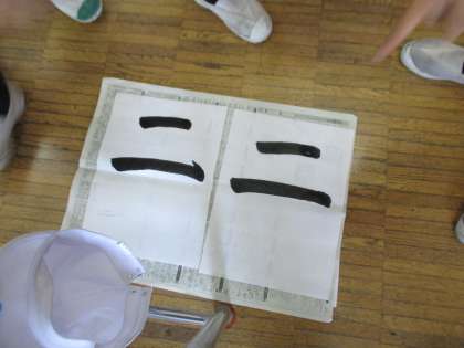 3年生の毛筆学習がスタートしました。今日は「二」の字に挑戦。筆の持ち方、墨汁のつけ方、姿勢など気をつけることがたくさんありますが、3年生は、担任の先生の話をよく聞いて、真剣に取り組んでいました。「校長先生、見てください。」とできあがった字を見せてくれる人もいました。やる気いっぱいの3年生たちでした。