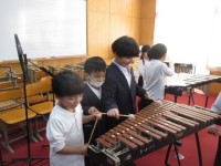 6年生を送る会に向けての練習風景(4年生)・感謝のプレゼントづくり(6年生)