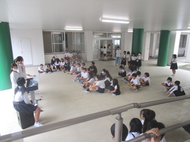今年の6年生は「会社活動」として、クラスや学校のためになる活動にグループで取り組んでいます。その中で音楽を発信する活動を通じて楽しい学校にしたい、という会社があります。先日、北校舎の前の広場で音楽ライブがありました。この会社名(グループ名)はSYI(エスワイアイ)です。
