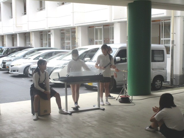 キーボードとパーカッションで「ケセラセラ」(ミセス・グリーンアップルの曲)を演奏してくれました。デビューライブだったので、ずいぶん緊張していましたが、息のあった演奏で聴いているみんなを楽しませてくれて、しっかりとアンコールにも答えてくれました。