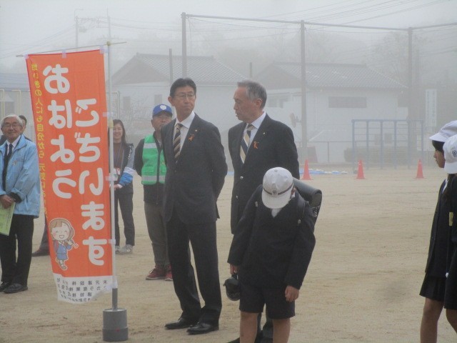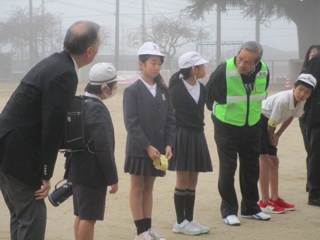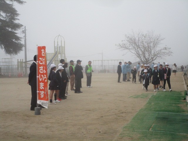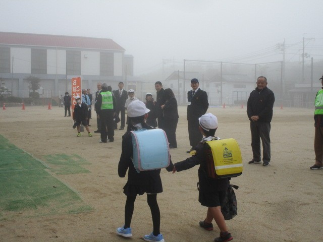 この日は朝から霧が出て寒い朝でしたが、子どもたちからも「おはようございます」の声がたくさん聞かれ、さわやかな気持ちのよい朝のスタートができました。