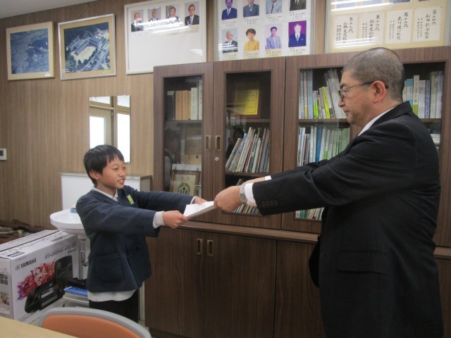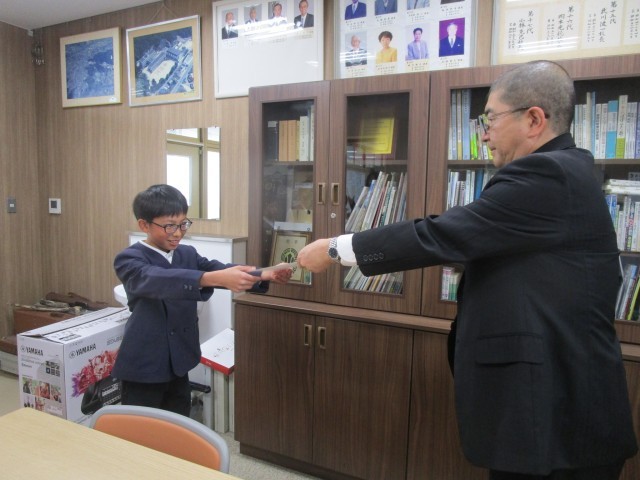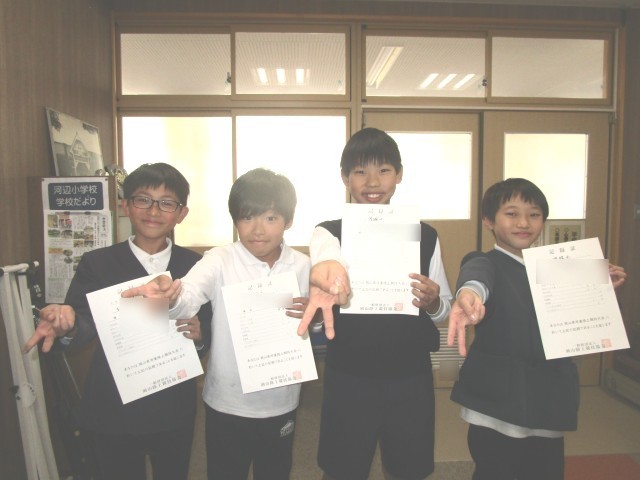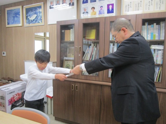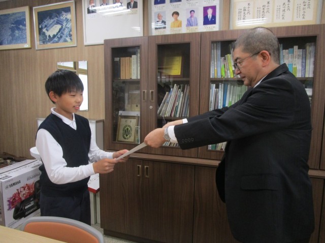 11月3日(月・祝)に岡山市の岡山県陸上競技場で行われた「第47回岡山県学童陸上競技大会」に出場した4人の児童に校長室で記録証を手渡しました。