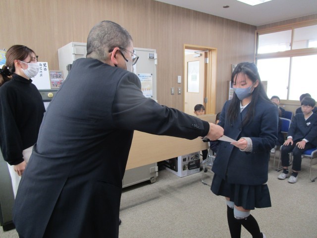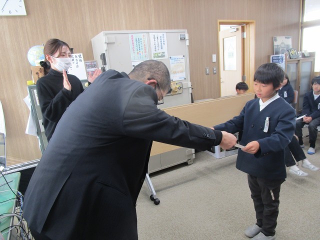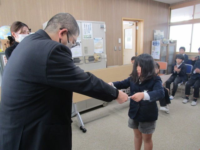 校長が一人ひとりの名前を読み上げて賞状を渡し、みんなで拍手をしました。
