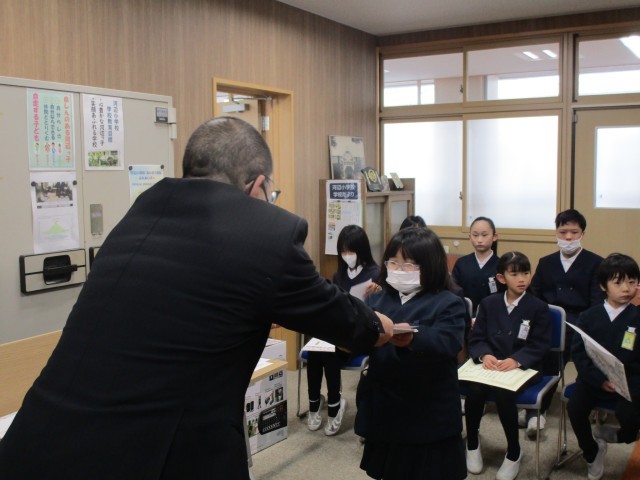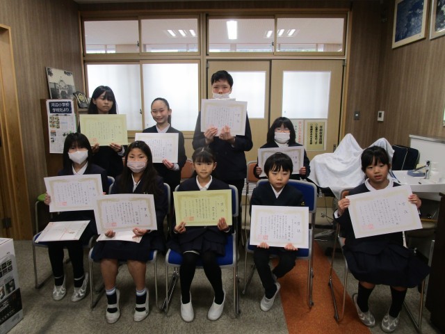 今年も人権週間に向けて取り組んでいた、人権標語(ひと・ふれあいメッセージ2025)と第77回人権週間津山市人権ポスターの表彰状が学校に届きました。校長室で入賞した子どもたちに表彰状を手渡しました。