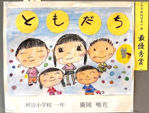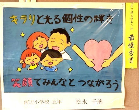 人権ポスターでは、低学年の部で1年生の廣岡結花さん、高学年の部で5年生の松永千璃さんの二人が最優秀賞を受賞しました。最優秀賞の廣岡さん、松永さんは、11月30日(日)にグリーンヒルズのリージョンセンターで表彰式がありました。
