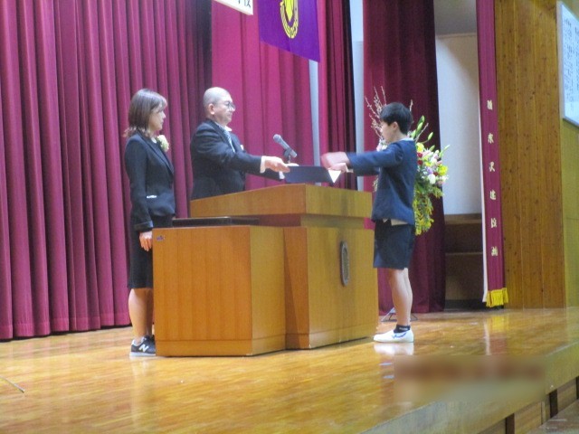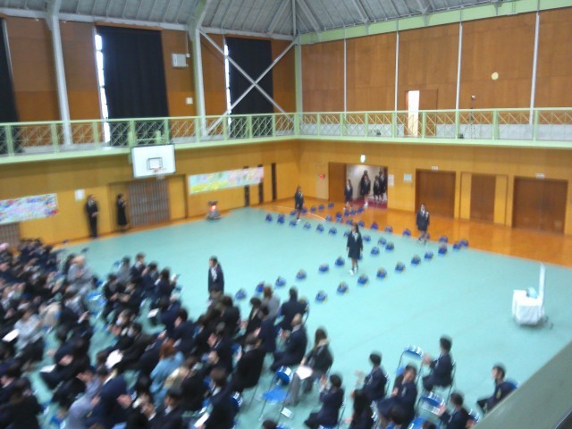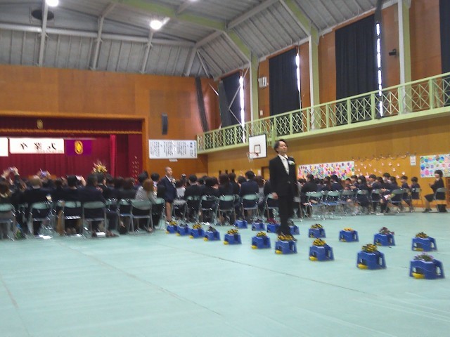 心配していた雨も上がり、来賓の方々と4年生、5年生が出席して、体育館で卒業証書授与式を行いました。