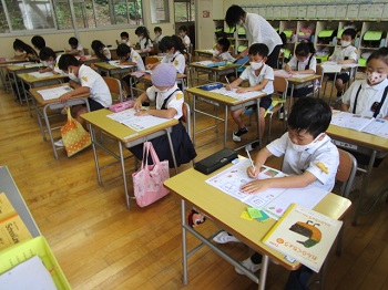 1学期にひらがなを覚えた1年生が、2学期はかたかなに挑戦中です。ひらがなよりも、スピードアップで進み、もうほとんど学習しました。とは言え、実際に使っていかないと身につかないので、自主学習で、フルーツや外国の名前を集めている人もいます。次は、いよいよ漢字です。1年生は、覚えるのがたくさんあって大変ですが、とても頑張っています。