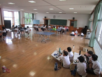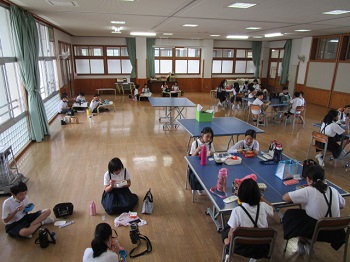 海の学習中止 5年生 公開日 2021/09/15 更新日 2021/09/15 お知らせ 9月15日(水) 今日は本来なら、5年生の海の学習の日でした。まん延防止法のために、渋川の研修所が臨時休業となり、残念ながら行けませんでした。給食も止めていたので、みんなで広い部屋でお弁当を食べました。青い海を見ながら、砂浜で食べてもらいたかったです。