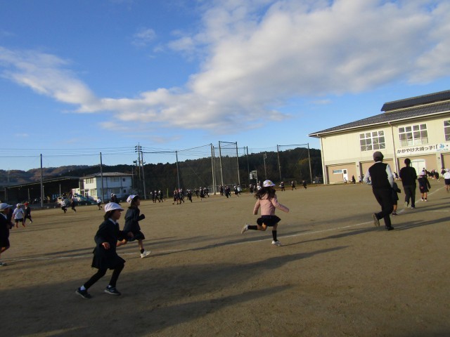 今週から朝ランニングが始まっています。全校児童が運動場に出て学年ごとに決められたコースを走ります。どの児童も5分間を自分のペースで一生懸命走っている姿が見られます。12月3日に行われるマラソン大会に向けて、毎日頑張っていきます。応援、よろしくお願いします!