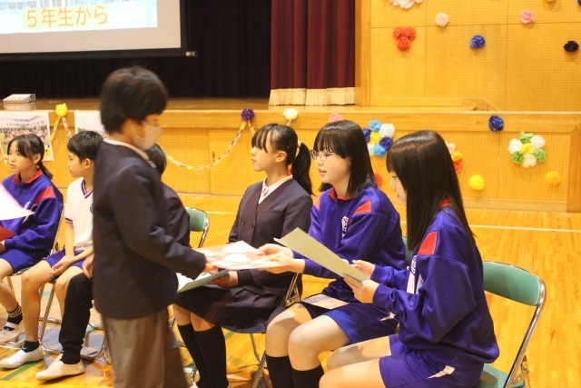 今日で二月も終わり、来週からはいよいよ三月です。今日は卒業を控えた6年生たちに、在校生たちが感謝の気持ちを伝えました。各学年からの出し物やプレゼントなど、気持ちのこもった和やかな会となりました。6年生たちにとって、小学校生活の楽しい一コマとなりました。