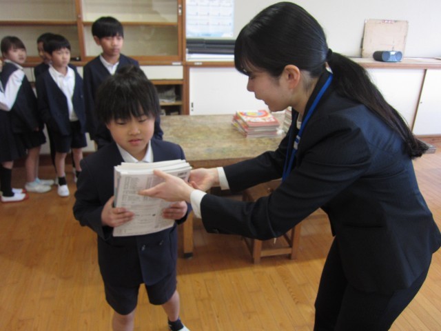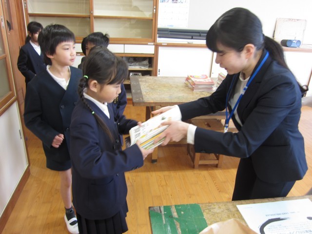 教科書配付 公開日 2026/04/08 更新日 2026/04/08 お知らせ 新学年になって最初に、新学年の教科書配付をしました。どの学年の子どもたちも嬉しそうに教室に入ってきて、新学年の教科書を受け取っていました。今日はお家に持って帰って、全ての教科書の自分の名前を記入してもらいます。新学年の教科書配付の喜びと、学習の喜びを感じながら1年間過ごしてほしいです! +7