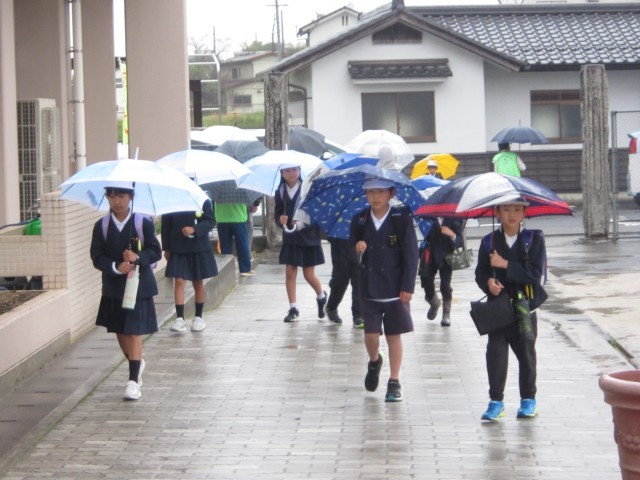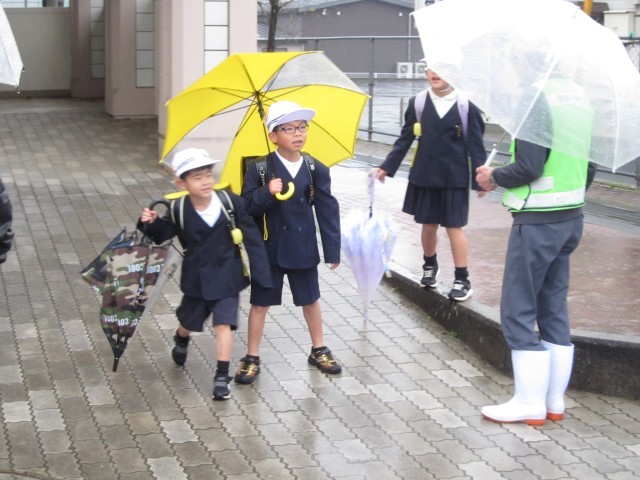 雨の中の登校 公開日 2026/04/10 更新日 2026/04/10 お知らせ 新1年生が入学しての初日の登校日が☂となりました。見守り隊の方々も新1年生を温かく見守りながら登校についてきてくださいました。☂の日は、傘をさすので普段より視界が狭くなるので、より安全に登下校できることを願っています。 +2