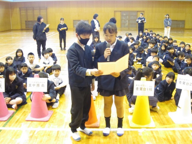 見守り隊の方々との顔合わせ会 公開日 2026/04/10 更新日 2026/04/10 お知らせ 毎日の大崎っ子の登下校の安全・安心の見守りをしてくださっている「見守り隊」の皆様との顔合わせ会がおこなわれました。子どもたちにとっては普段見慣れている方かもしてませんが、自分たちの安全・安心のために活躍をしてくださっていることへの感謝の気持ちを伝える会でもあります。6年生の代表の子どもたちもきちんとその意図をくんだご挨拶がきちんとできていました。 +7