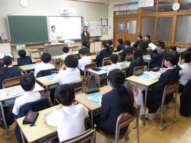 授業の様子(5年生) 公開日 2026/04/15 更新日 2026/04/15 お知らせ 5年生は、外国語の授業でした。ALTと英語専科の先生を中心に、楽しい授業が進められていました。子どもたちも授業のリズムとテンポに合わせて、楽しく授業を受けることができていました。 +2