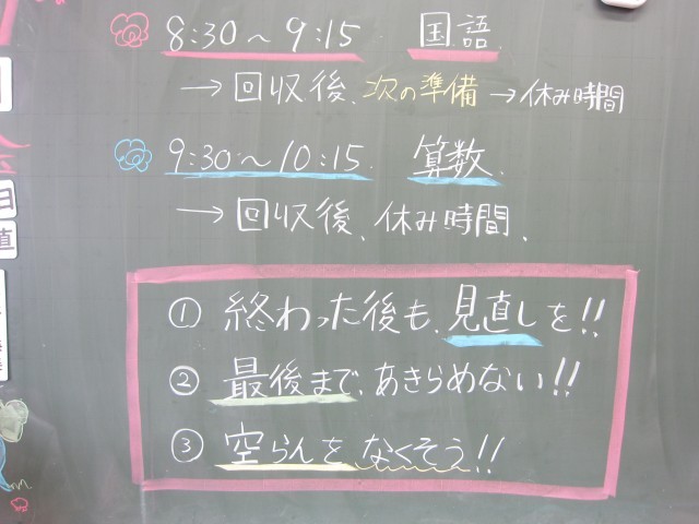 授業の様子(6年生) 公開日 2026/04/17 更新日 2026/04/17 お知らせ 6年生は、4月23日(木)の全国学力・学習状況調査に向けて、過去問にトライしていました。昨年度の国語と算数の問題を解いていました。 〇終わった後も見直しを! 〇最後まであきらめない! 〇空欄をなくそう!担任が書いているメッセージを子どもたちも心に留めて頑張っていました。本番に向けてあと1週間あります。自分の苦手なところにもう一度振り返って挑戦することをしてもらいたいと願っています。 +1