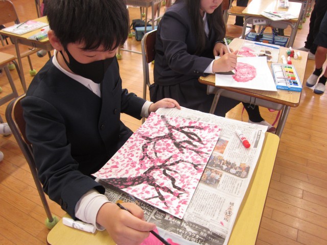 授業の様子(6年生) 公開日 2026/04/22 更新日 2026/04/22 お知らせ 6年生は、図画工作の時間に「桜の咲くころに」というテーマで絵を描いていました。綺麗な色使いをして塗っていました。もう桜は散ってしまいましたが、素敵な作品に仕上がっています。来週28日(火)の参観日の時に、是非ともご覧ください! +4