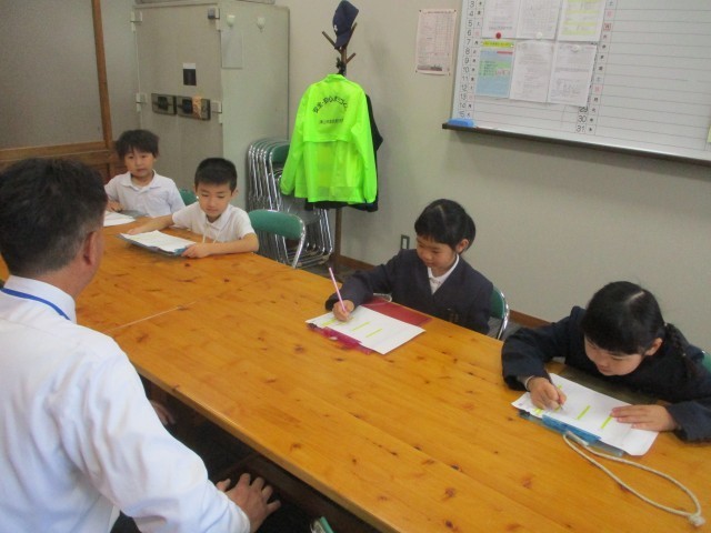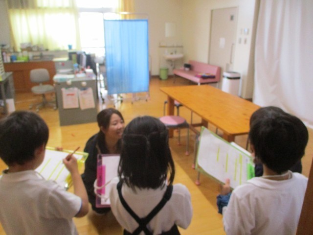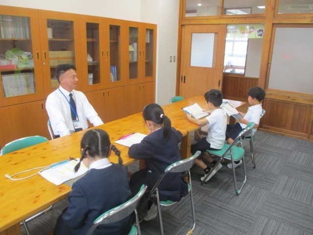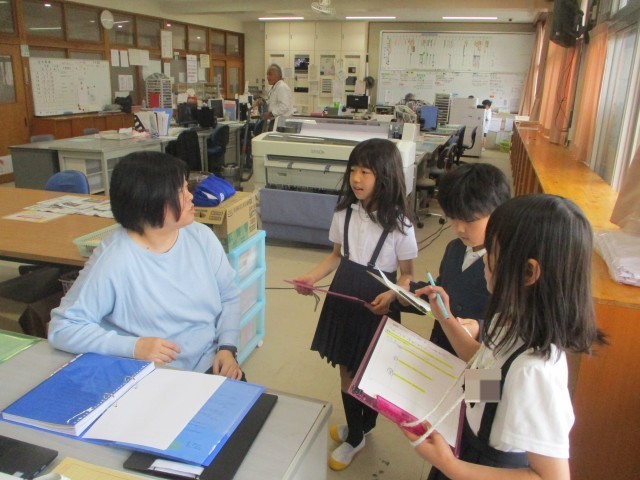 職員室、保健室、給食室、校長室の教職員にグループに分かれてのインタビューでした。