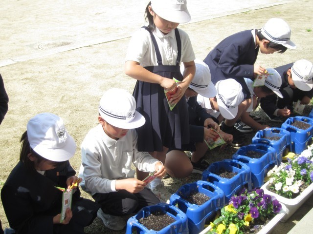 ミニトマト種植え(2年生) 公開日 2026/04/28 更新日 2026/04/28 お知らせ 2年生は、生活科の学習で「ミニトマトの種植え」をしました。手のひらに乗せて、種の小ささを確認しました。これから夏に向けて、芽が出て、葉っぱも付き、ミニトマトがたくさん実ってきます。今後、毎日の水やりも大変ですよ!2年生、頑張れ! +4