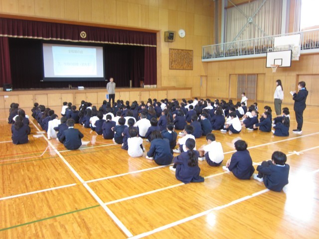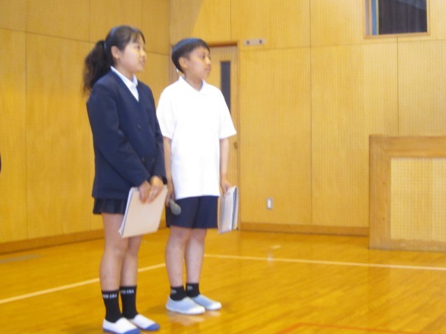 今日は、全校朝の集い(4月)をおこないました。