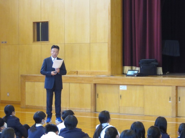 学校長にお話の後に、生徒指導担当からの5月の生活目標「集団生活のきまりを身につけよう」の説明がありました。