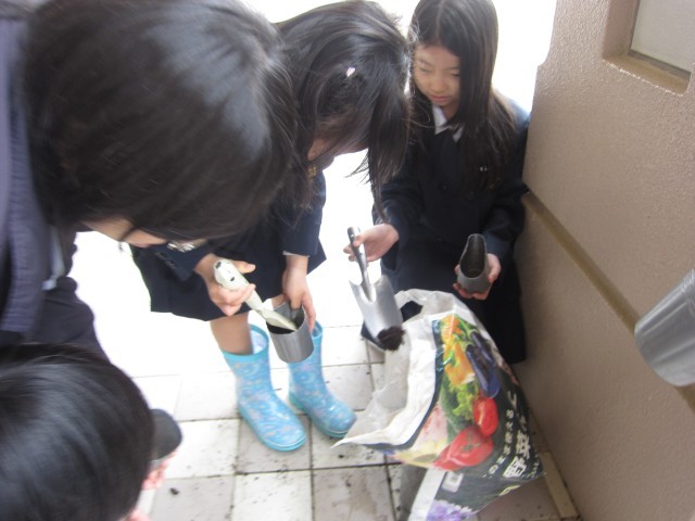ほうせんか種植え(3年生) 公開日 2026/04/30 更新日 2026/04/30 お知らせ 今日は朝からの☂でした。3年生の子どもたちは、理科の時間に「ほうせんか」の種植えを予定していました。外ではできない状況だったので、児童玄関前で活動をしました。土の入れ替えで、落ちる場面がありましたが、子どもたちはほうきを持ってきて掃き掃除をしてくれる温かい場面もありました。ほうせんかは、今後ふたばが出てきて大きくなり花を咲かせてきます。毎日の水やりも欠かさずにお願いします。 +2