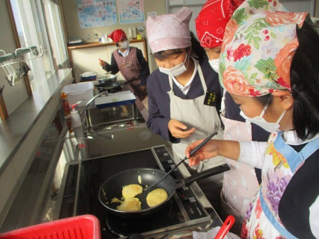 家庭科の「みんなでほっとタイム」という単元でホットケーキを作りました。みんなで協...
