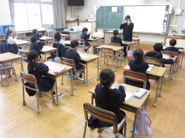 1年生は、ひらがな「り」の勉強をしていました。手拍子をしながら、りんご、りれー、...