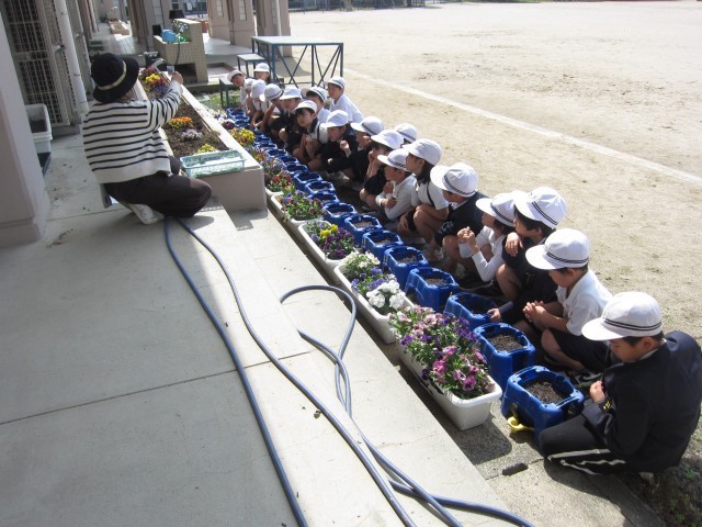 2年生は、生活科の学習で「ミニトマトの種植え」をしました。手のひらに乗せて、種の...