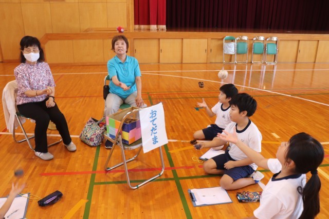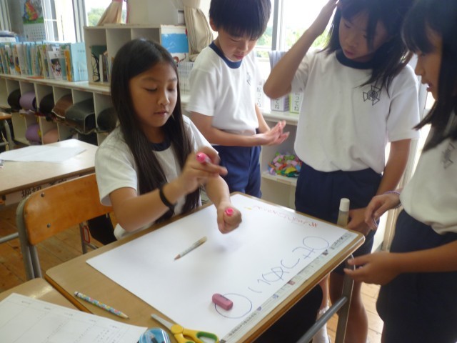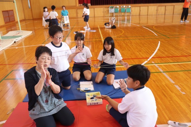 3年生は、10月の初めに1・2年生に昔遊びを伝える授業を考えています。今日は、事前に3年生が地域の方からいろいろな遊びを教わりました。今年は「お手玉」「あやとり」「竹とんぼ」「コマ回し」「すもう」です。子どもたちはしっかり遊びを楽しんだあと、各担当に分かれて10月に向けての準備をしていました。リーダーとして、成長していく3年生を見守っていきたいと思います。