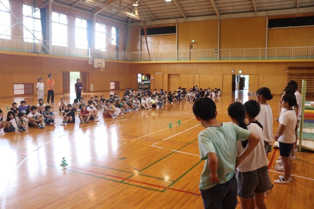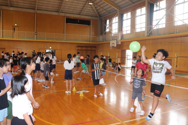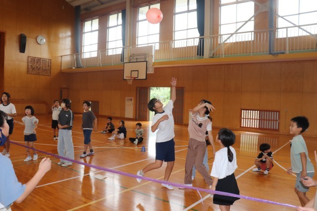 運営委員会や6年生主催で、2か月に一度程度、水曜日のお昼は「ASOBIタイム」が開催されます。今日は、全校での風船バレー大会でした。縦割り班に分かれて、5人ずつコートに入って4分間、試合をしました。1年生がポイントすると、2点得点となるなどのルールを入れるなど、低学年も楽しめるよう工夫がされていました。運営委員の皆さん、楽しい企画をありがとうございました。