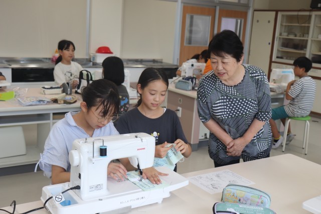 5年生は、家庭科の授業が大好きです。初めて体験することが多く、その都度、意欲的に取り組んでいます。今日も、ナップサック作りでミシンを操作するのを楽しみにしていました。しかし、いざやってみると、何度も操作で困っていました。そんな時、地域のボランティアの方々が大活躍です。3人の方々のおかげで、無事今日の授業を終えました。完成まで、またボランティアの方にお世話になることがありそうです。本当に、ありがとうございました。