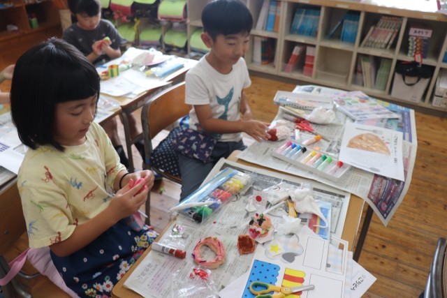 今日も、広野小学校には子どもたちの楽しい顔がたくさん見られました。1年生では、紙粘土に絵の具を混ぜて「ごちそうでパーティー」を作るとき、手の平に色がべったり。教室に笑い声が響いていました。