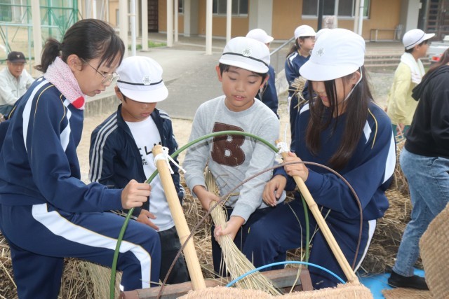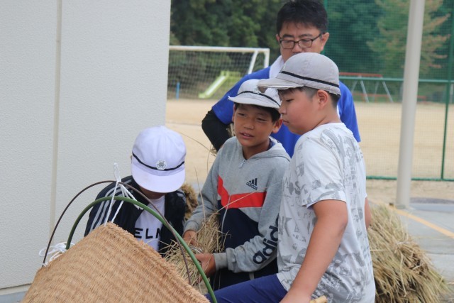 この2つの道具を使って、みんなで協力しながら、脱穀をしました。稲の束がたくさんあったので、約2時間ノンストップで作業しました。「今の時代は機械で作業できるからよかった」「こんなに大変なら、お米を大切に食べよう」など、学びの多い5年生でした。