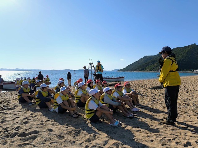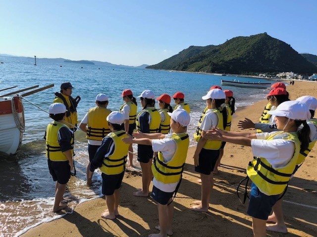 昨日・今日と絶好の海事研修日和となりました。昨日は、17人全員で息を合わせ、大きな声を出し、無事カッターを海に繰り出すことができました。一人一人の力がなくては、大きな船を動かすことはできません。力を合わせることの大切さがわかったことと思います。夜は、自分たちで拾った貝殻などでフォトフレームを作りました。充実した一日となりました。