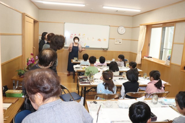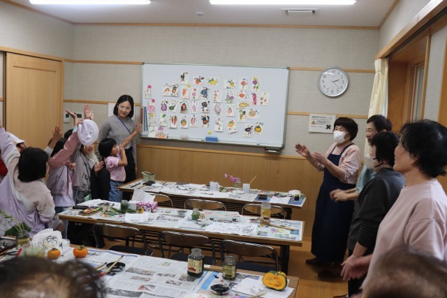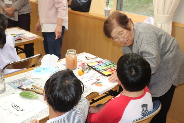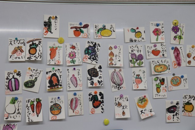広野小学校に隣接している広野公民館とコラボして、絵手紙を描きました。公民館活動で絵手紙をされているサークルの方に、指導していただきました。1年生12人が体験しました。柿やコスモスなど、秋の食べ物や植物の中から、自分たちで好きなものを選んで、絵を描きコメントを添えます。子どもたちの素直な感性あふれる作品を見て、「子どもらしくて素敵」「大胆なタッチで素晴らしい」と、たくさんの賞賛の言葉をいただきました。ご指導してくださった方々、ありがとうございました。