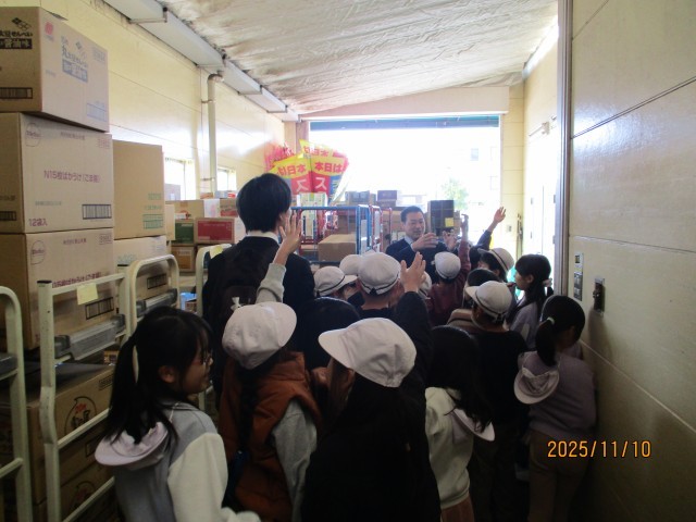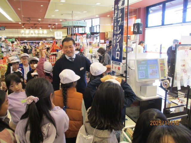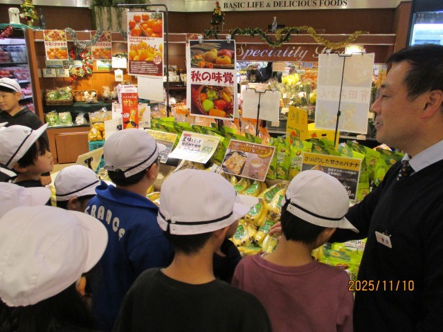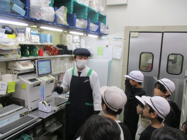 昨日、3年生はマルイ高野店さんへ見学に行かせていただきました。事前に見学をお願いしていたので、担当の方がお忙しい中仕事の手を止めて丁寧に説明をして下さいました。店頭でのお話の後で、普段見ることのできないバックヤードでのお仕事についも説明をしてくださいました。実際に多くのものを見せていただくことで、子どもたちは学びを深めることができました。