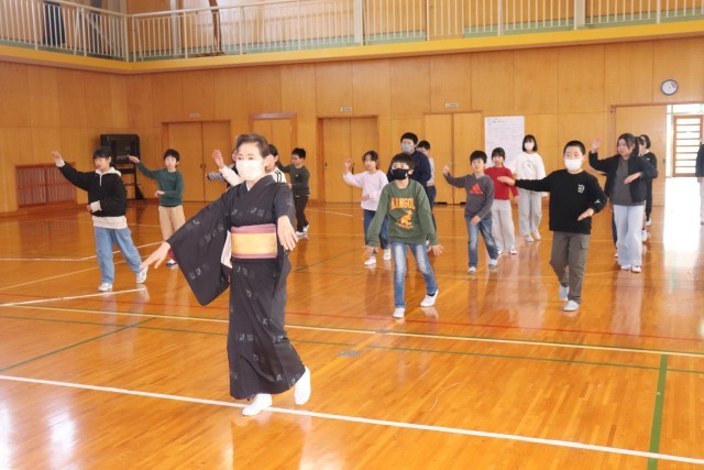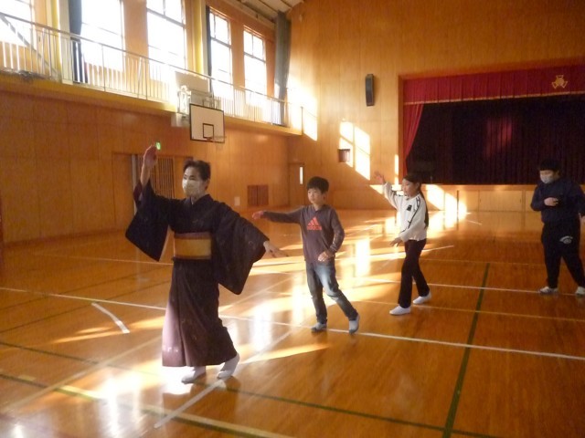 今年も、日本舞踊の先生をお招きして「広野民謡」の練習をしました。広野に伝わる民謡を後世に伝えていくため、例年4年生が教わることにしています。今年の4年生も、真剣な表情で指先や目線まで注意を向けながら、熱心に練習していました。最後は大きな円を作り踊っていきました。みんなで一体感を感じる時間でした。