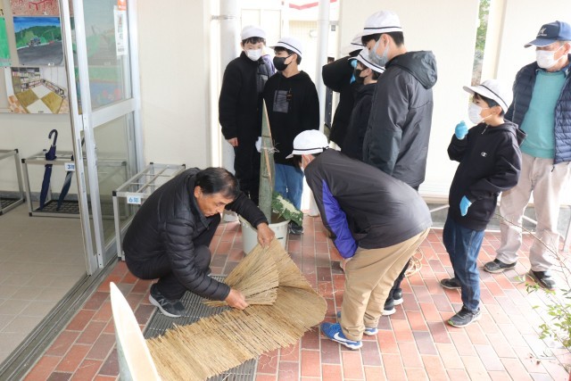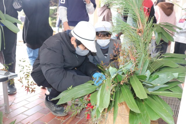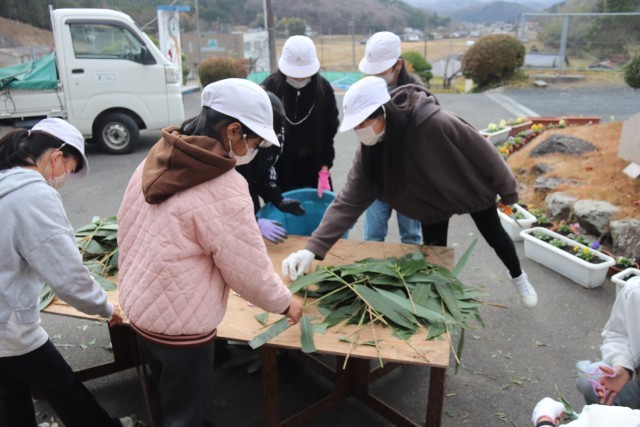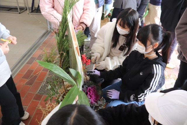 年末の広野小の風物詩「門松作り」が本日行われました。まず初めに、門松に松や竹や南天などが使われる理由を学んだあと、地域の方の指導のもと実際に作っていきました。容器の中心に葉ボタンを植え、周りに竹や松などを入れ込んでいきます。より豪華に仕上げるために、周りは熊笹で飾っていきます。集中して取り組み、例年より短時間で完成しました。毎年、門松を作るために、地域の方が入念に準備をしてくださっています。本当にありがとうございました。