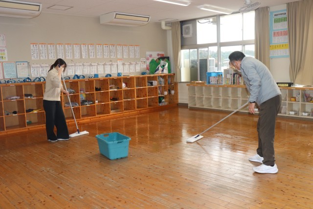 また、学期最後の大掃除では、自分たちで進んで学校をきれいにしていきました。普段できないところも徹底的にきれいにしていきました。子どもたちが帰った後、各教室にワックスを塗りました。明日は、気持ちのよい教室で最後の日が迎えられそうです。