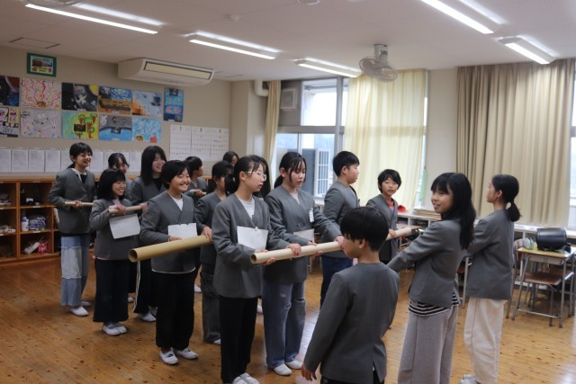 今日の2学期終業式は、全校での接触を控えるためオンラインで行いました。校長室からの配信に続いて、2年生から「掛け算九九」、5年生から「海事研修」についてのクラス発表がありました。各教室や職員室でその様子を見ながら和やかな時間が過ぎていきました。その後は、各自に担任から通知表が手渡されました。子どもたちのがんばりがたくさん詰まった通知表です。お家でも褒めてあげて下さいね。