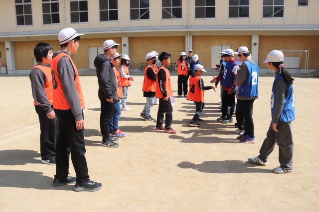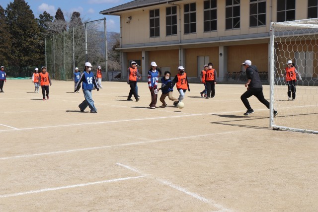 後半は、2チームに分かれてのサッカー対決でしたが、最後はお互いに握手をして健闘を称え合いました。春を思わせる陽気の中、子どもたちの笑顔が輝いて見えました。