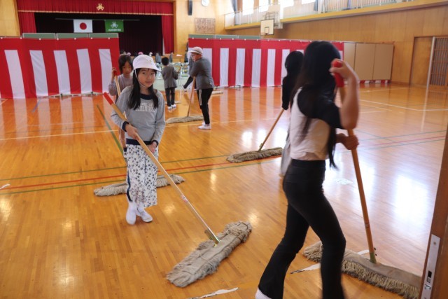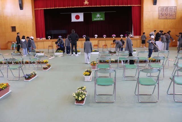 4年生以上の児童は、明日の入学式の準備をしました。さすが、高学年の子どもたち、あっという間に会場がきれいになりました。明日の入学式が楽しみです。