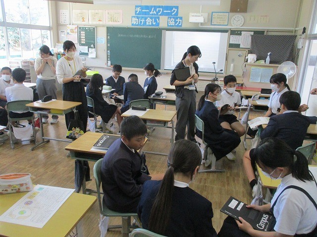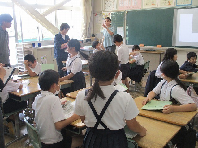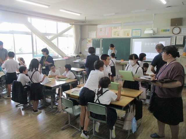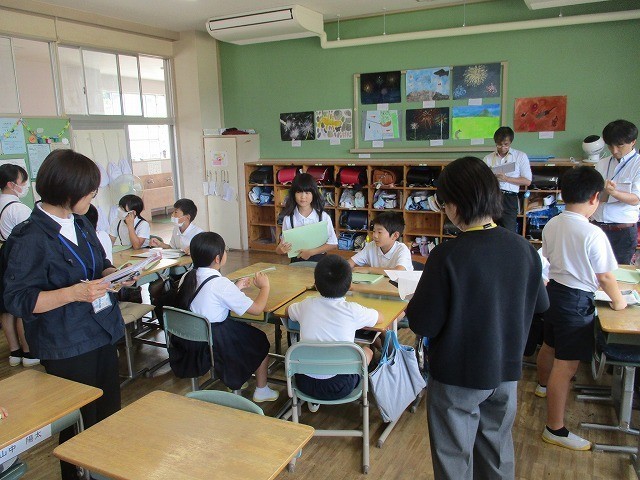 加茂中学校の先生方が、4年生と6年生の総合的な学習の時間の授業を参観していただきました。