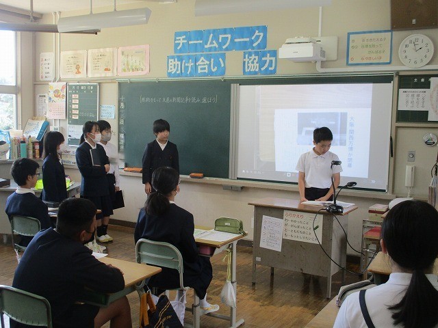 自分たちが興味のある新聞記事を選び、記事の内容やその記事についての自分の考えを発表しました。